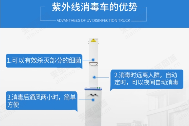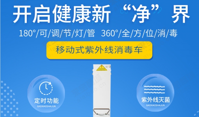 移动式紫外线消毒车高效消毒,可用于餐饮、酒店住宿、医院、学校、商场超市、公司、家庭、公共交通等相关场所的消毒工作